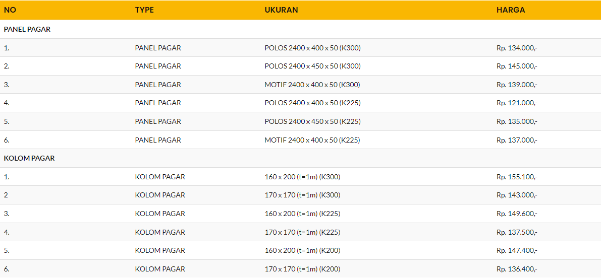 SPESIFIKASI & HARGA PAGAR PANEL BETON